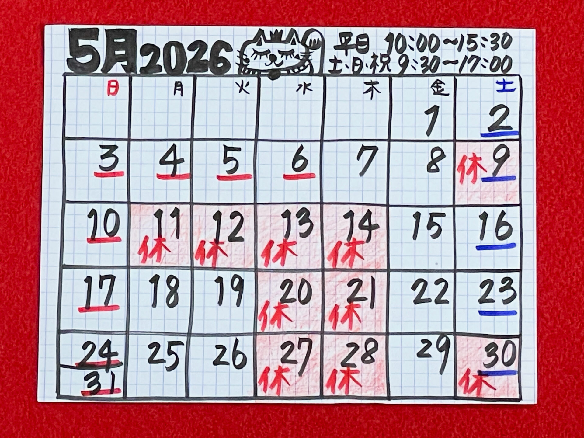 5月営業日のお知らせ